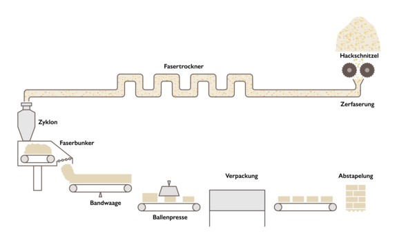 In dit proces produceren we de inblaasvezels die kunnen worden ingeblazen met een ruwe inblaasdichtheid van ongeveer 28 kg/m³ en een dampdiffusie (µ) van 1-2.